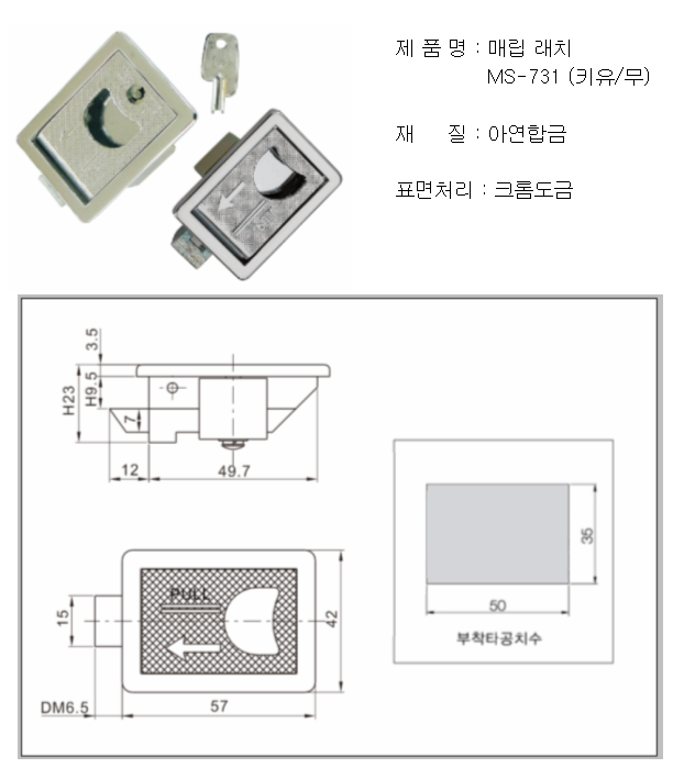 LATCH-TYPE 매립래치 MS-731 (키유/무) 페이지 정보 작성자 관리자 댓글 0건 조회 1,544회 작성일 20-07-22 14:08 이전글 다음글 목록 본문 유사제품 BY2-11 TK-C-42 목록