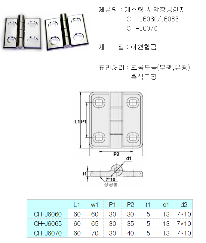 CASTING 캐스팅 사각장공힌지 CH-J6060/J6065 CH-J6070 페이지 정보 작성자 관리자 댓글 0건 조회 1,276회 작성일 20-09-10 11:17 이전글 다음글 목록 본문 목록