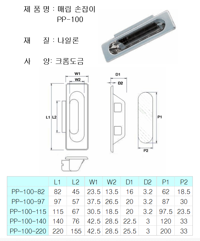 플라스틱 매립 손잡이 PP-100